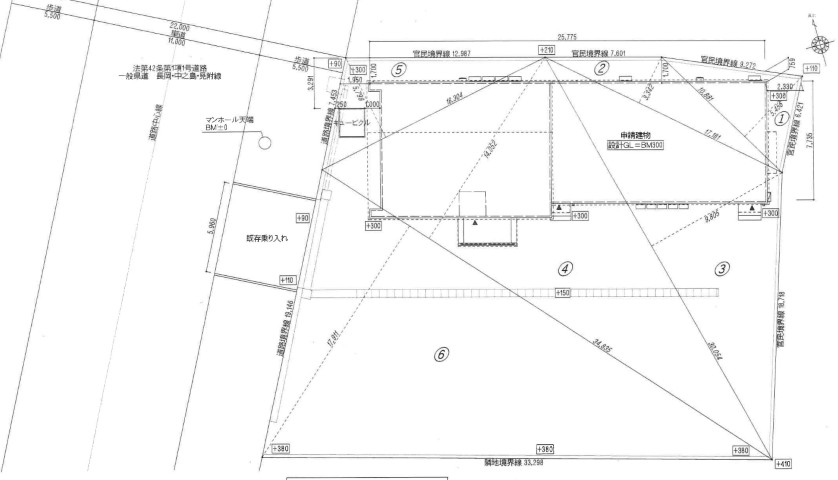 | 土地面積 | 登記簿:825.37㎡(249.67坪) | 建物面積 | 1F 203.59㎡ 2F 94.45㎡ 合計298.04㎡(90.15坪) |
